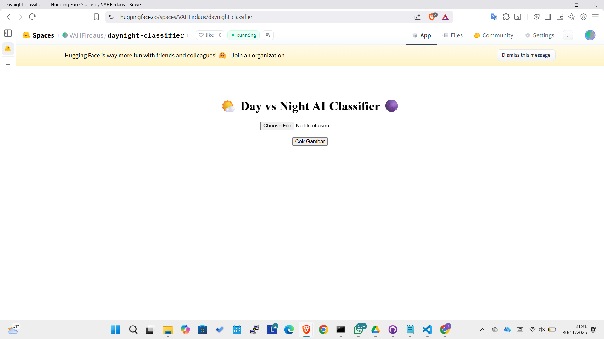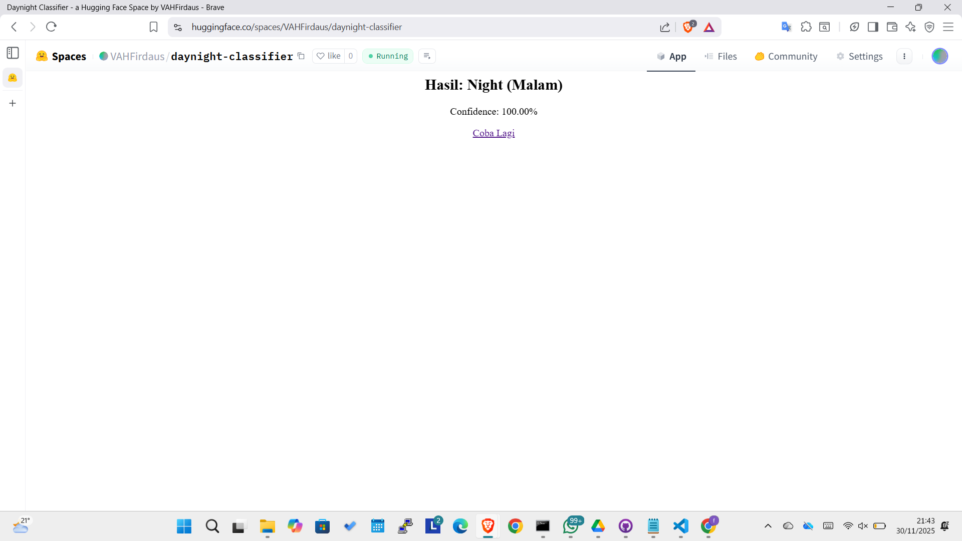* Space Name: `daynight-classifier-namaanda` (ganti `namaanda` dengan nama/NIM anda).